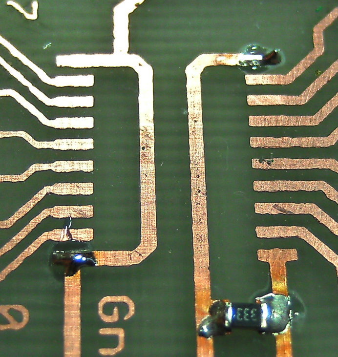 Soldering SMD by hand: I forgot soldering the other side of the resistors.